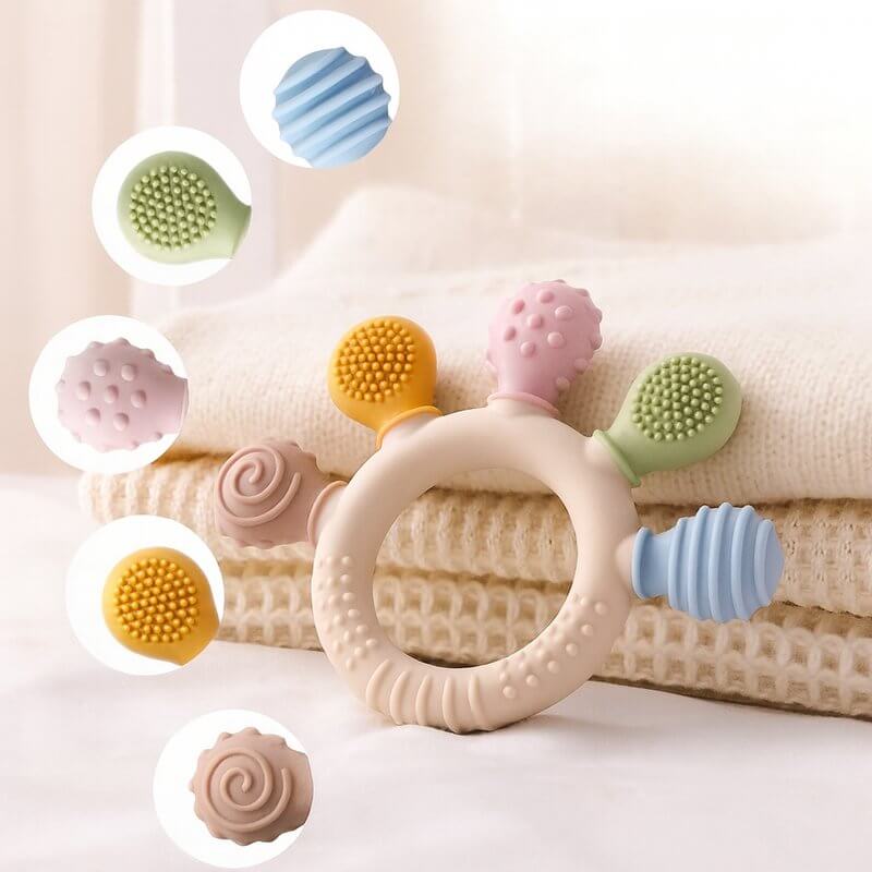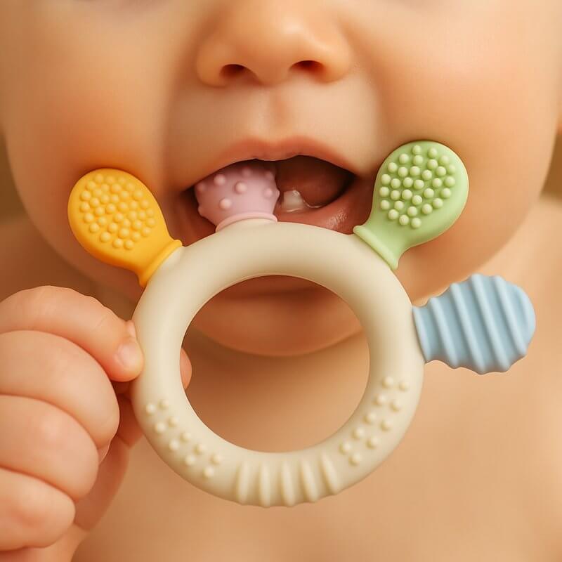 Die sanfte Massage des Zahnfleisches, kombiniert mit sicheren, schadstofffreien Materialien, hilft deinem Baby, die Zahnungszeit spielerisch und entspannt zu meistern. So wächst jedes Lächeln gesund und mit Geborgenheit.