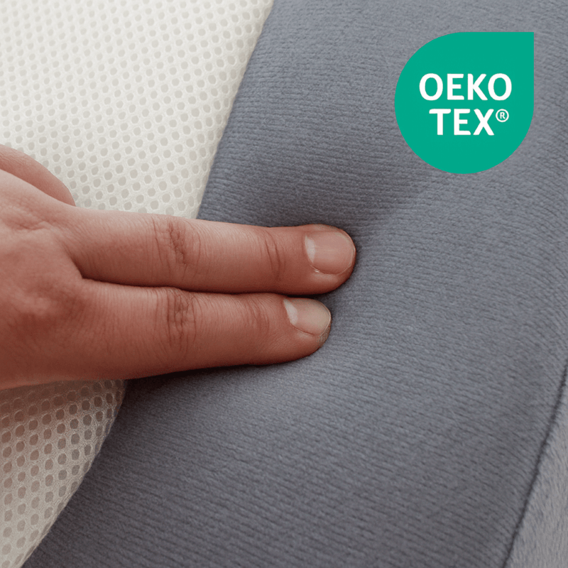 Wir verwenden ausschließlich babysichere, hypoallergene Materialien, darunter ultraweichen Memoryschaum und atmungsaktive Bio-Baumwolle, um den Komfort und Sicherheit Deines Babys zu gewährleisten.
