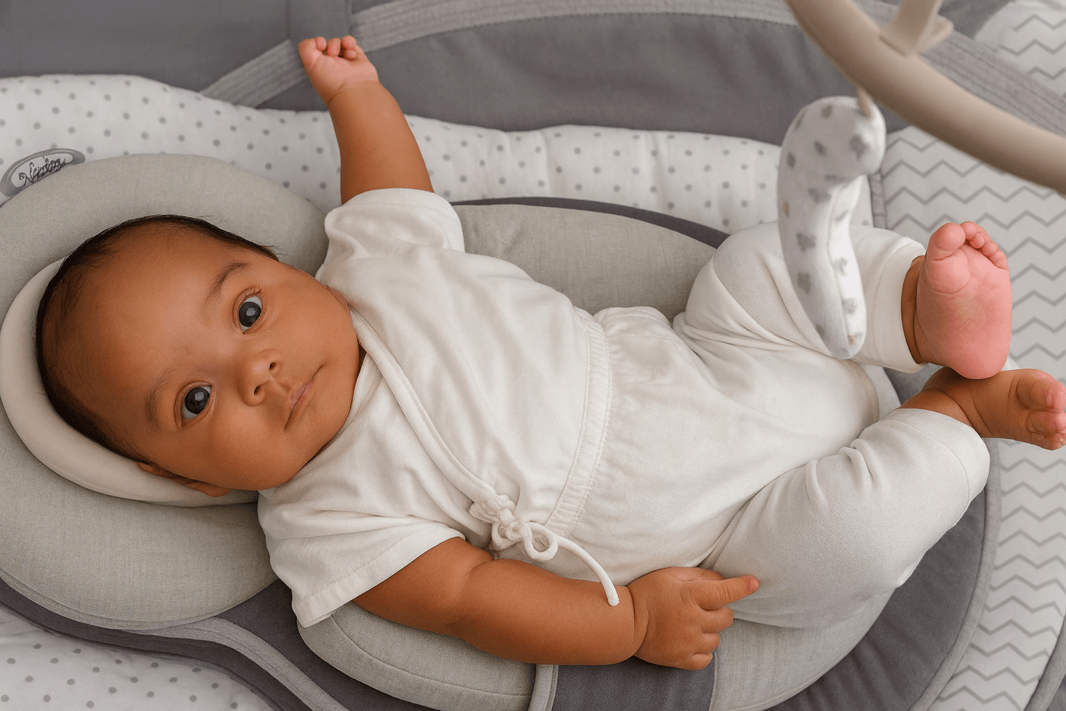- Weniger Reflux & Spucken – die leichte Neigung entlastet Magen und Atemwege.