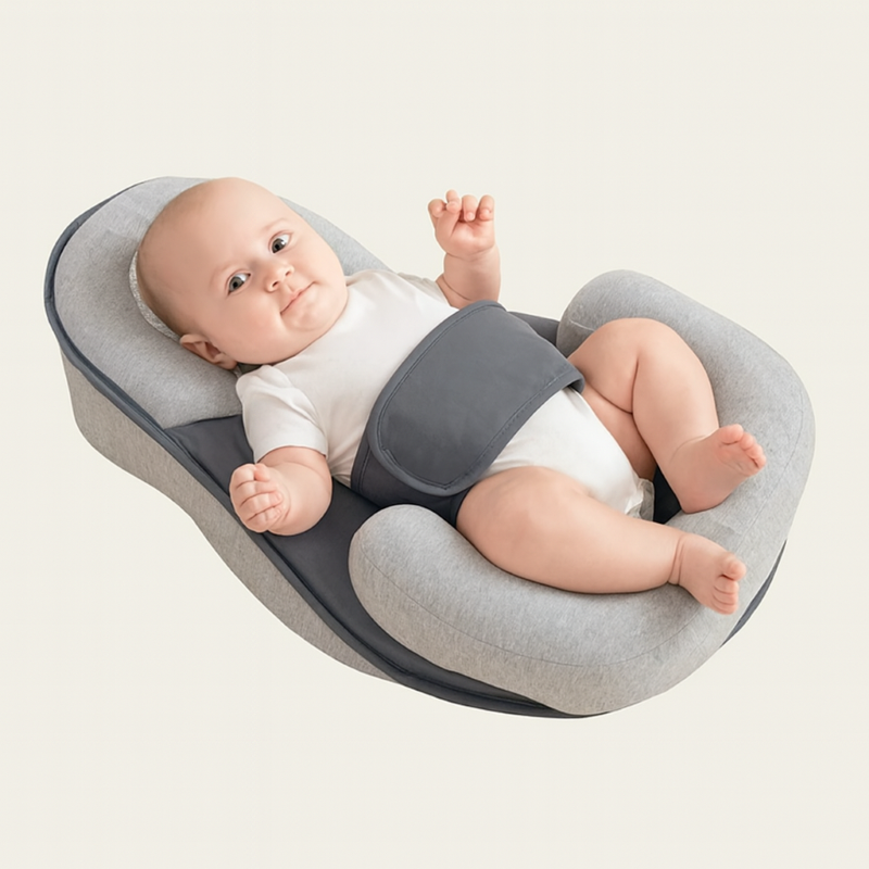 Schenkt Dir Ruhe und Deinem Baby Geborgenheit. Durch das sanfte Anti-Roll-Design und den weichen Sicherheitsgurt bleibt Dein kleiner Schatz immer sicher in seiner Lieblingsposition liegen. Kein Verrutschen, kein Risiko – nur wohltuende Sicherheit und ein Gefühl von Nähe, das Euch beide ruhig schlafen lässt.